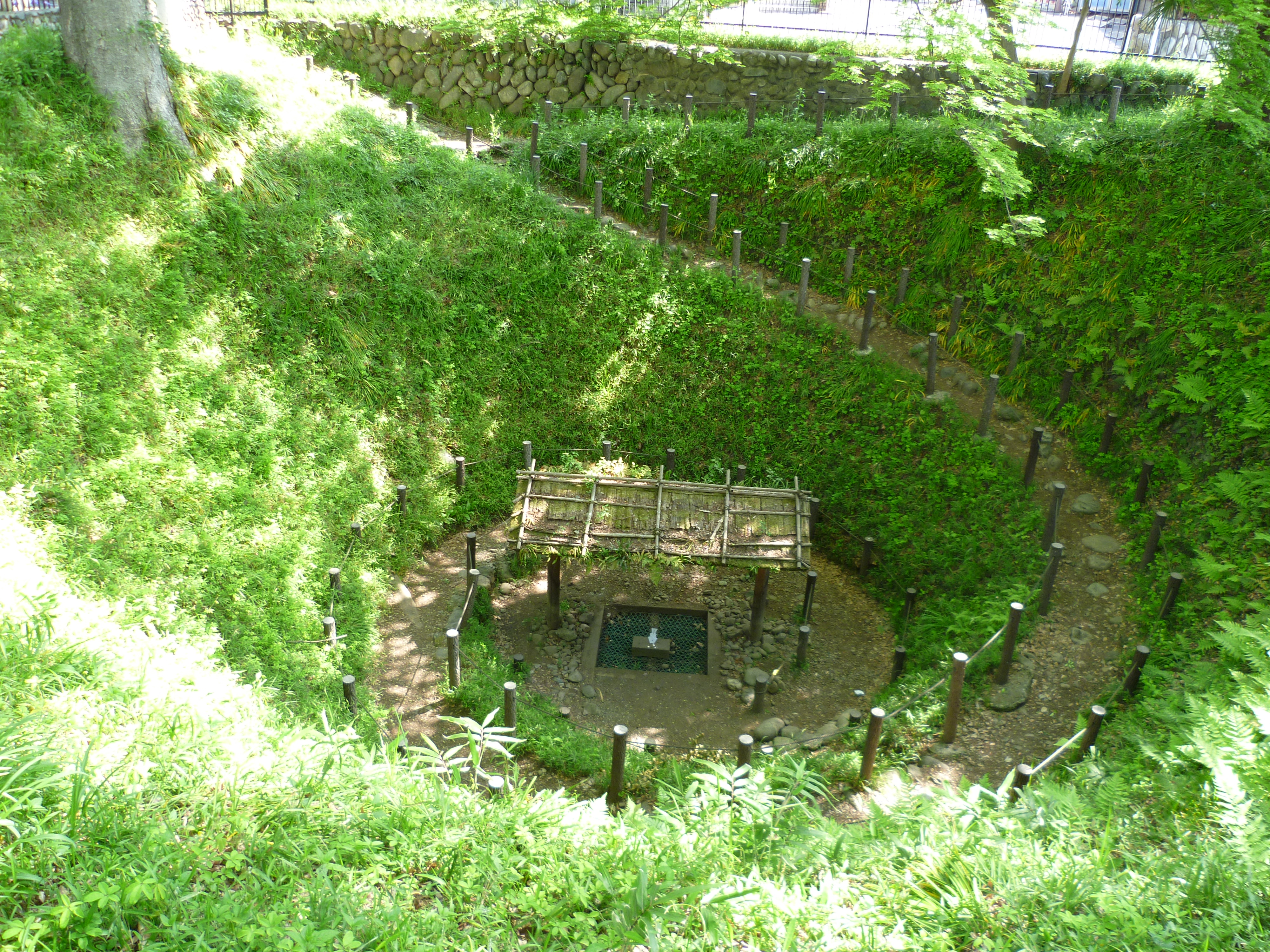 まいまいず井戸は、名前の通り渦巻き状に掘り下げた場所に井戸を掘る方法です。このように井戸を掘る理由は、武蔵野台地の特徴にあります。武蔵野台地は深く掘らないと地下水脈に届かないにも関わらず、地層が脆いために垂直に深く掘り下げることが困難です。よって渦巻き状に掘り下げた後に井戸を垂直に堀る必要があったからです。