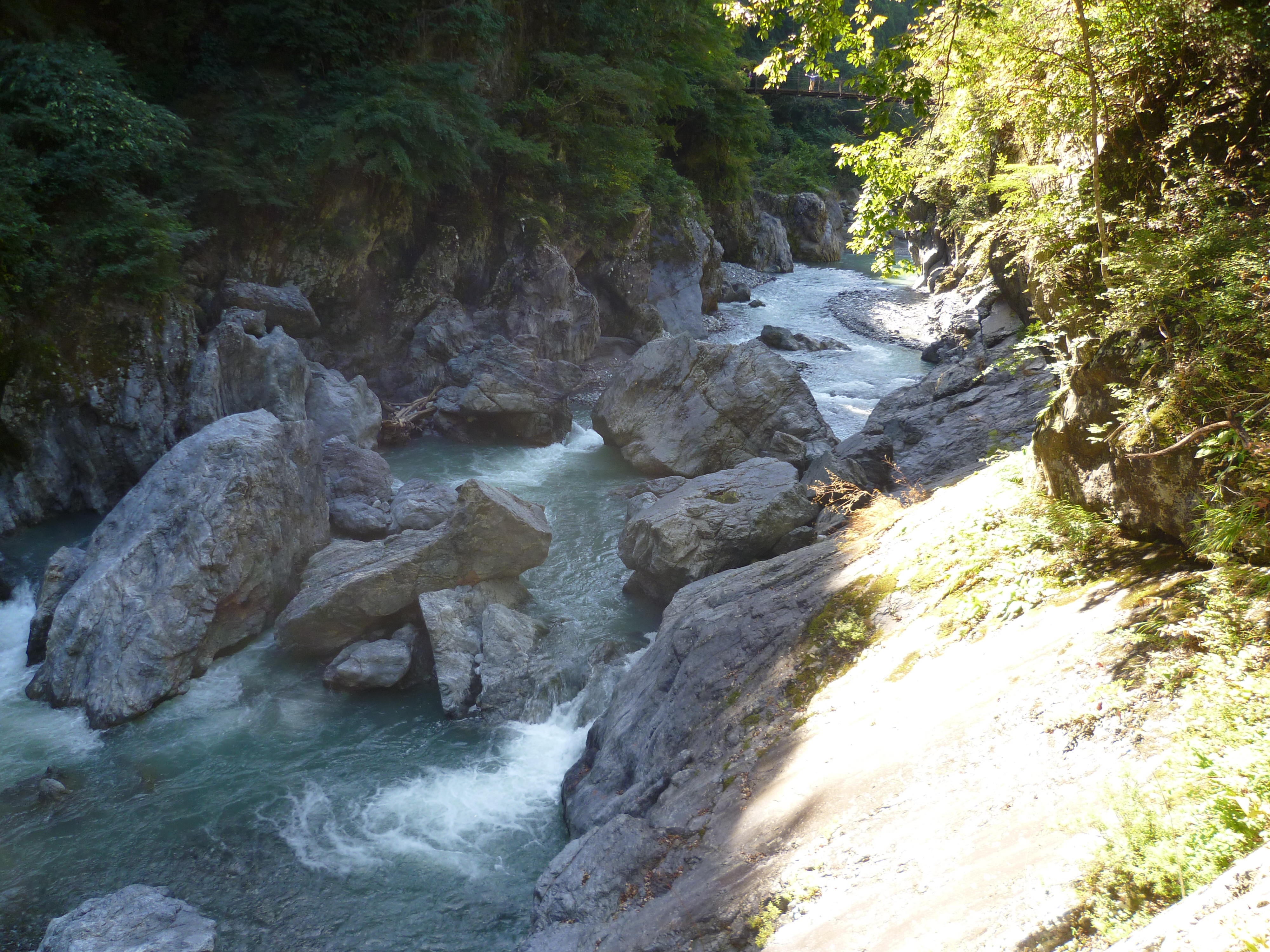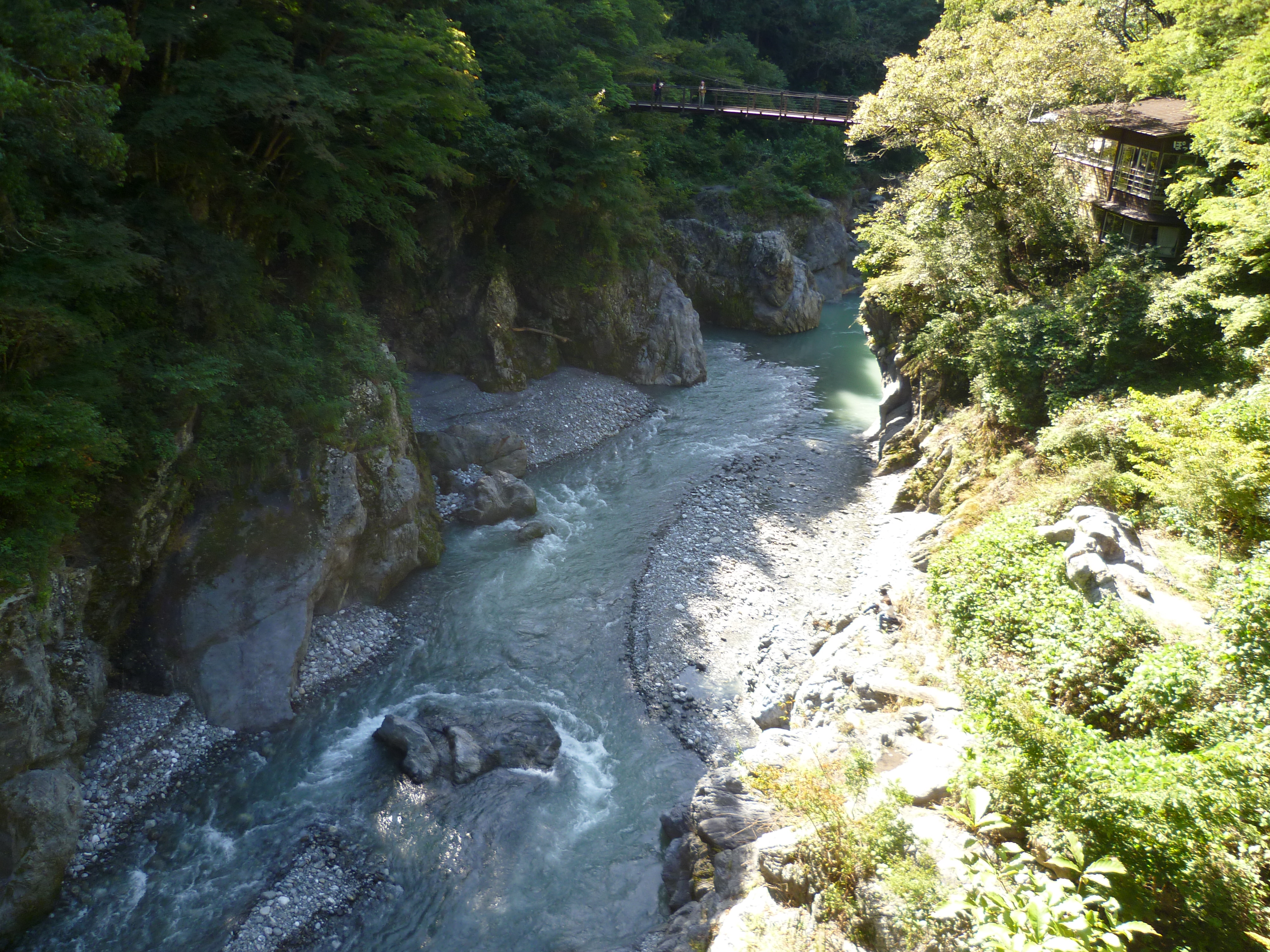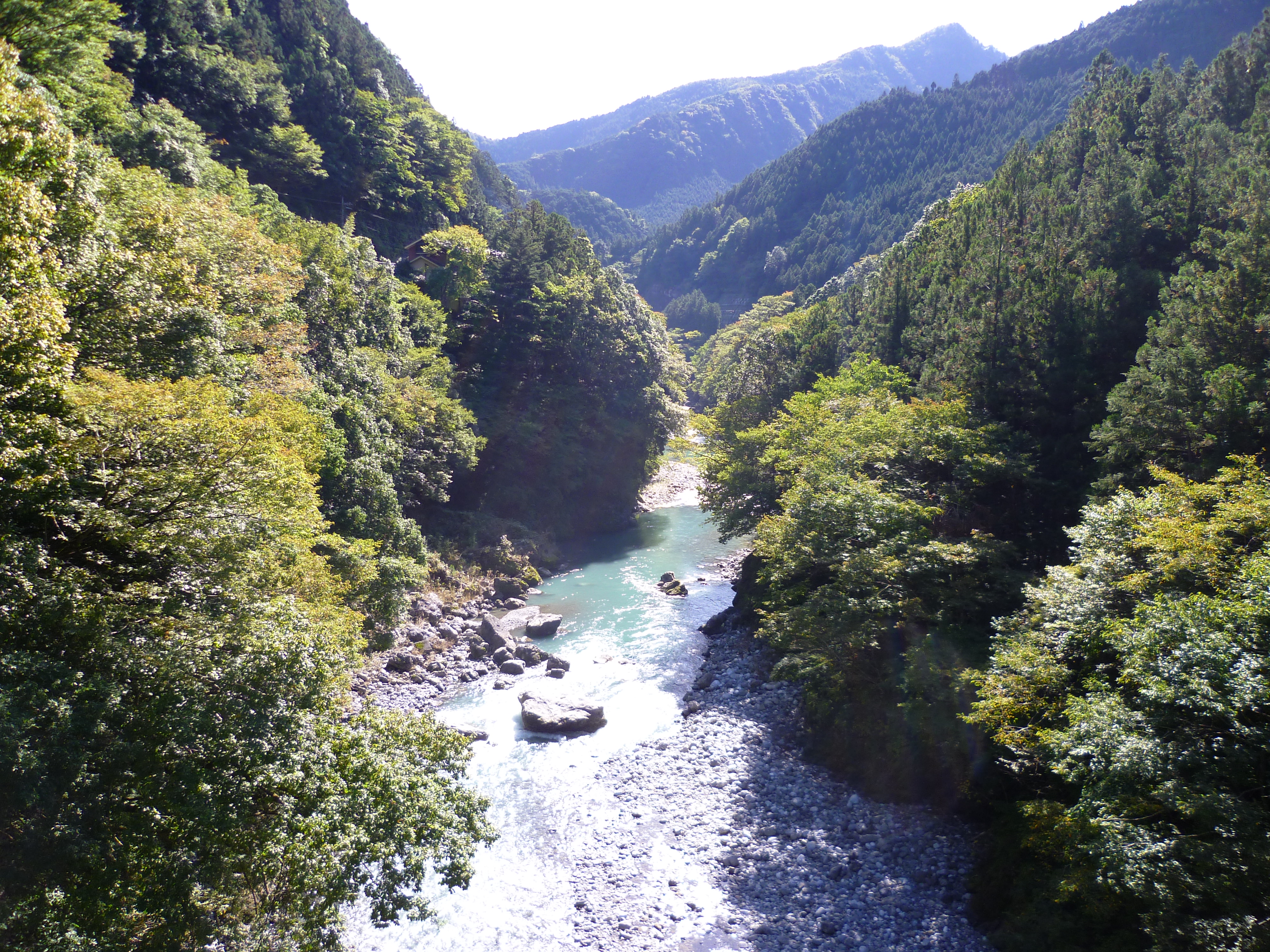 橋からの川の眺めは本当に絶景です。山々の自然をバックに雄大な川の流れを眺めていると悠久の時を感じて心が癒されます。