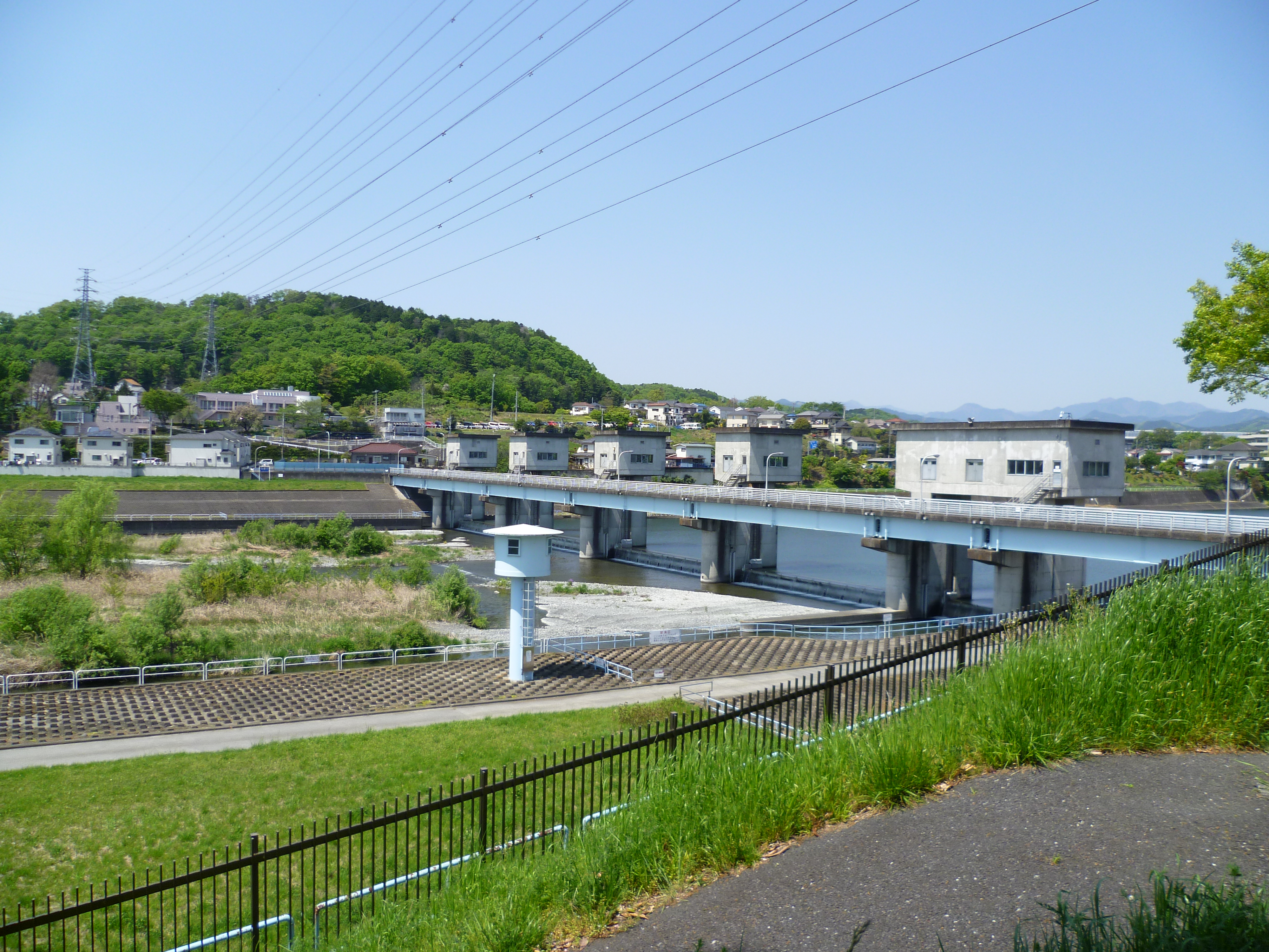 伝統的な投渡堰の構造をもつ羽村取水堰とは異なり、鋼製門扉で構成された近代的な取水堰です。