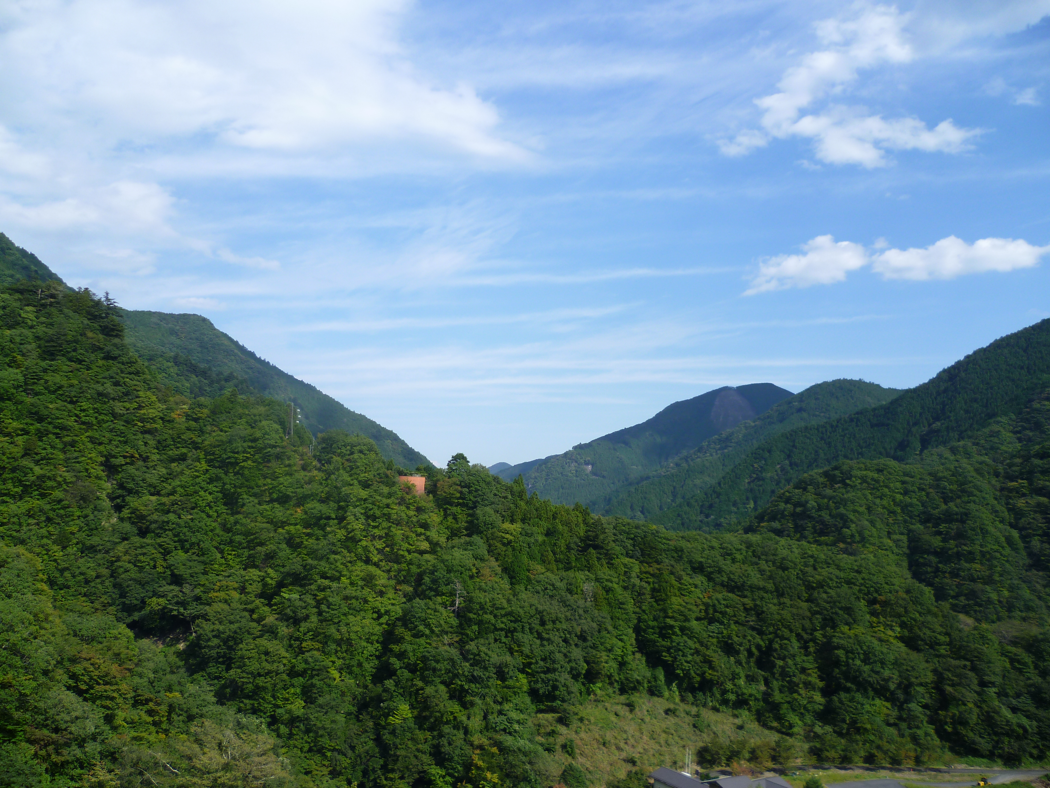 奥多摩湖への山道を上ってきて、まず目に入ってくるのがこの景色です。当初の予想よりかなりキツイ思いをして上ってきたからかもしれませんが、この景色を見た瞬間何も考えずにただただ立ち尽くしてしまいました。なので、印象的な景色のひとつです。
