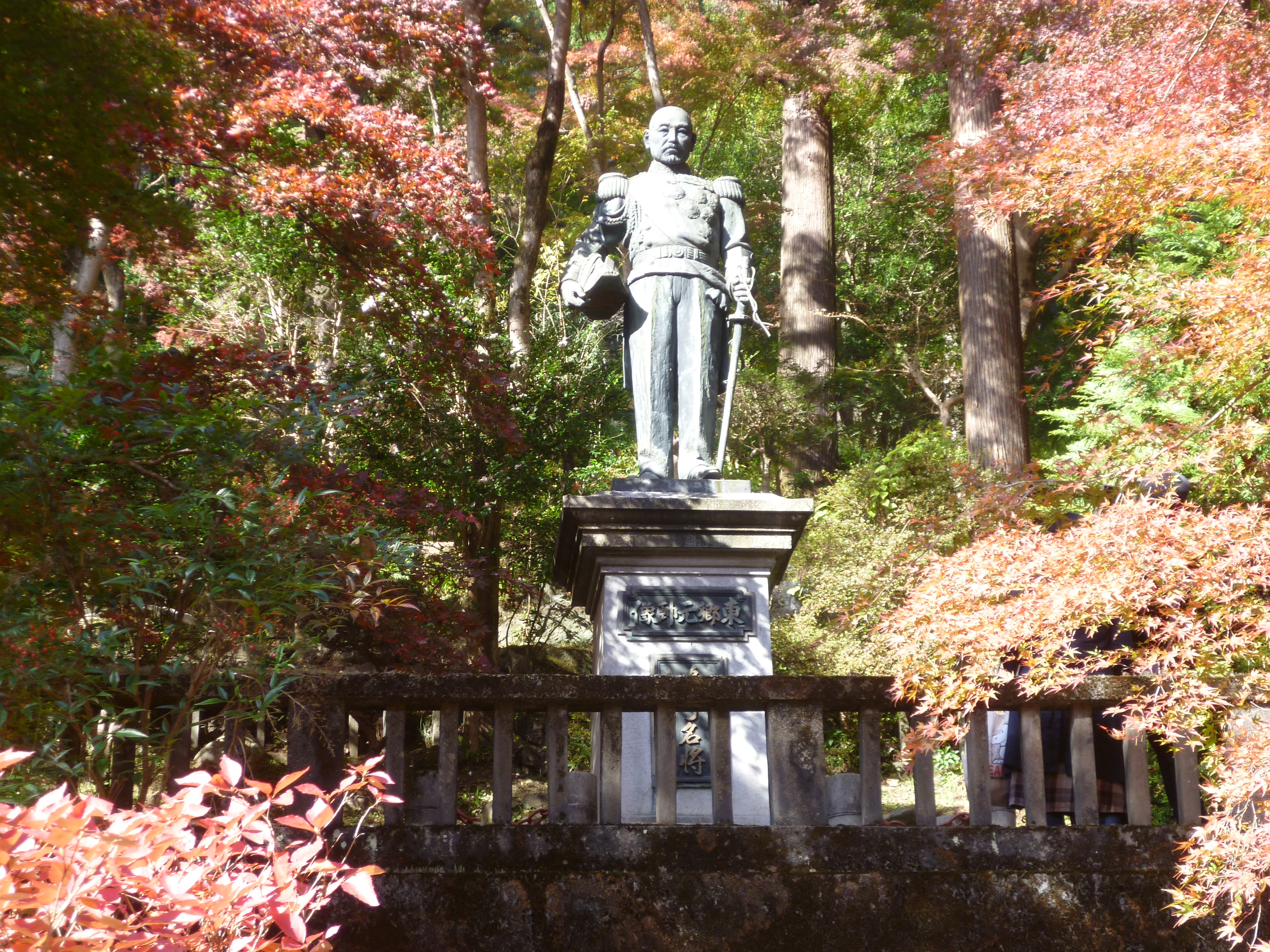 次は、東郷公園です。東郷ということからも分かる通り、公園の名前の由来は連合艦隊司令長官東郷平八郎の銅像が建っていることからです。秩父御嶽神社の境内を東郷公園と呼んでいます。朝のテレビ番組のお天気のコーナーで、東郷公園の紅葉が綺麗だと紹介されていたのを見て行ってみようと思いました。テレビ番組で取り上げられることだけあって、紅葉は見事です。また、バルチック艦隊に被弾した三笠の甲板の一部等も展示されていて歴史を感じることも出来ます。