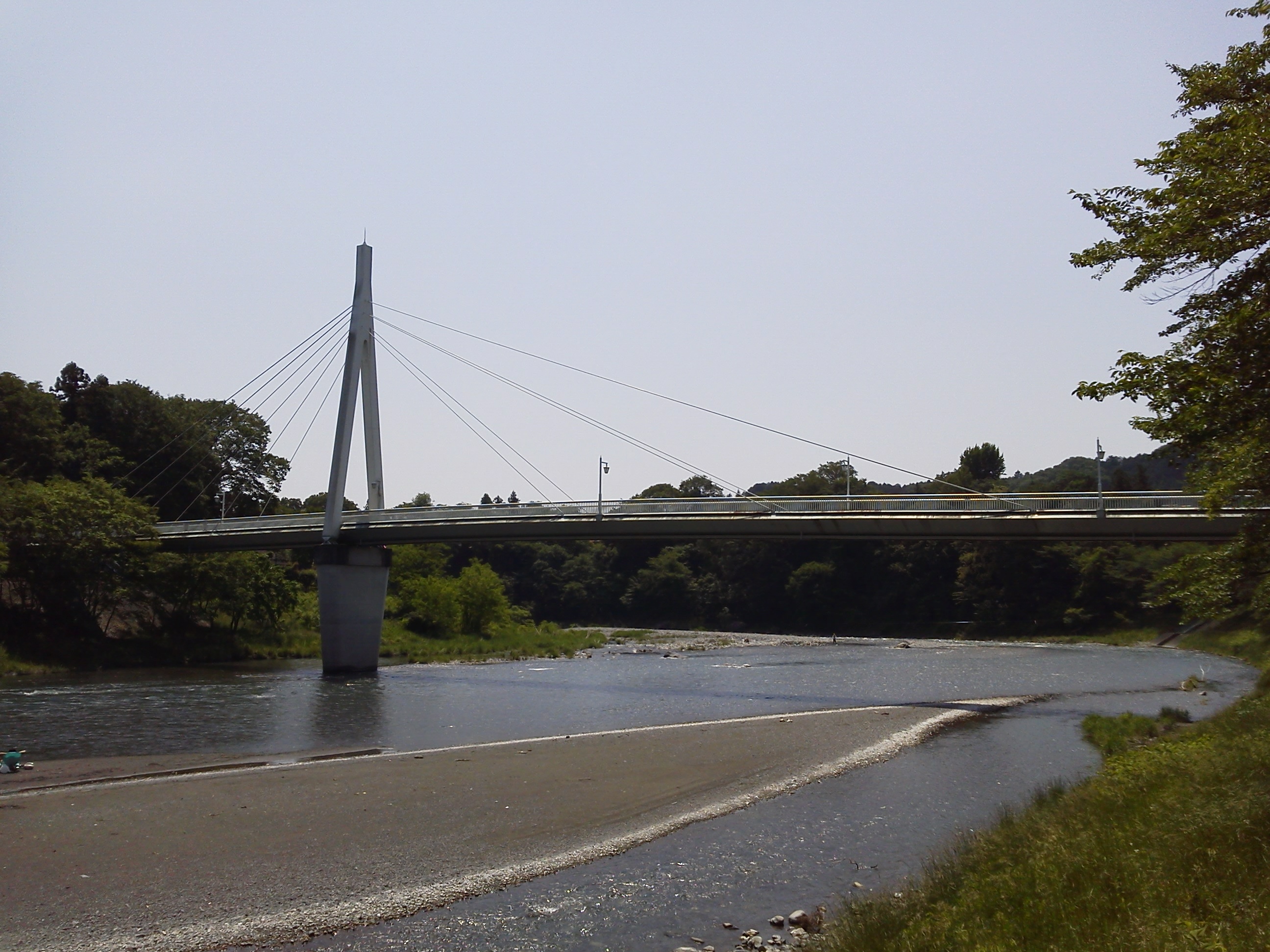 横瀬町町民会館の東の道を横瀬川に進むと、橋の左側にあります。公園もあり、河原も夏は心地良さそうです。